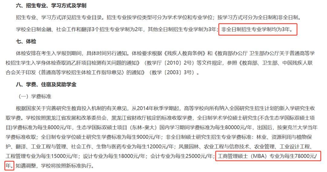 东北林业大学2025非全日制MBA学费为全程8.7万元(2024非全日制MBA学费全程23.4万元),学费大幅度减少了14.7万元。