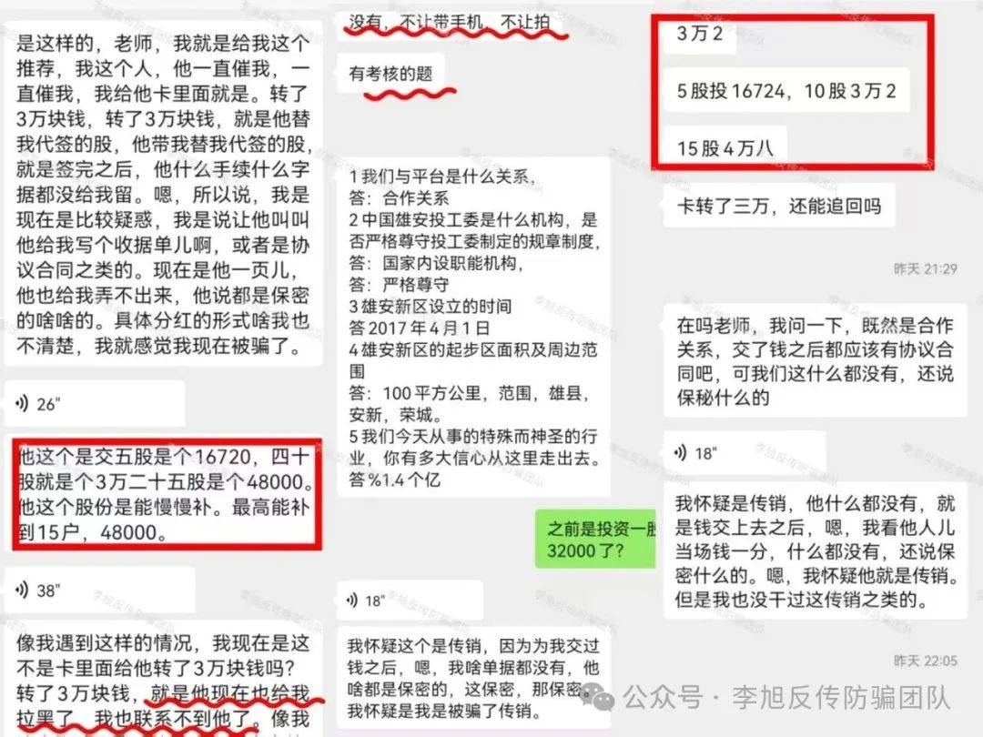 该组织打着“雄安集团投资公司”的名义,谎称国家项目,单份3200元占位,满单48000元,宣称出局可赚1.5亿元。网友被骗该地后,因听信对方洗脑线