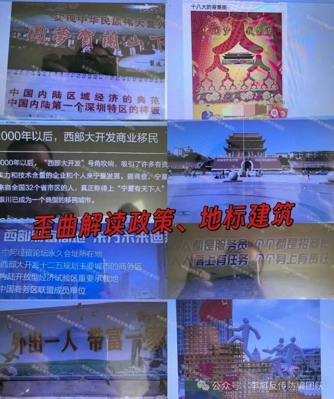 打着“移民经济”“西部大开发”等旗号,谎称国家隐蔽项目,歪曲解读地标建筑,鼓吹投资33500元,出局可以获得1200万的回报。网友家人被朋友以推荐项目的名义骗至银川大武地区,经过7天的洗脑后,对此深信不疑。