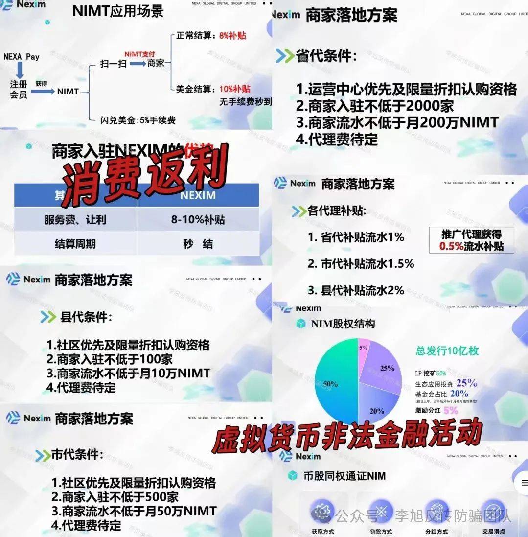 发行支付通证NIMT和股权通证NIM,宣称用户持币可参与生态分红,并以“用户数量决定市值”诱导投资。