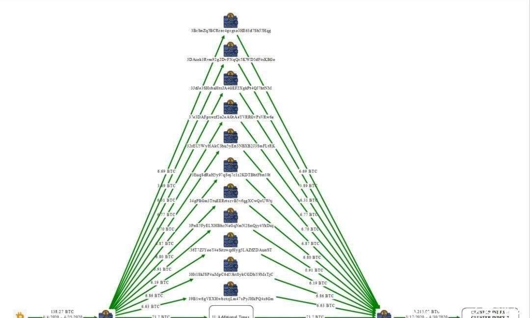 34. 他们先将大量赃款拆分成成千上万的小额交易,分散注入上千个比特币钱包地址,然后再逐步汇聚至核心控制的账户。